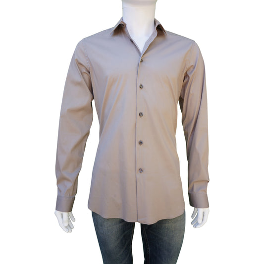 PRADA BROWN WOVEN BUTTON-UP SHIRT