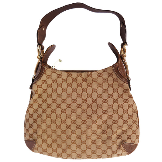 GUCCI GG CREOLE CANVAS LEATHER HOBO BAG