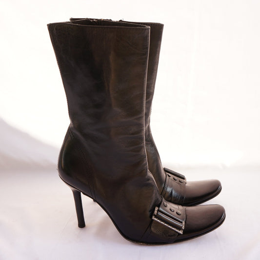 Pierre Balmain Black Leather Heel With Ankle Strap