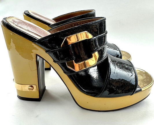 Marc by Marc Jacobs Black Patent and Yellow Heel Shoe