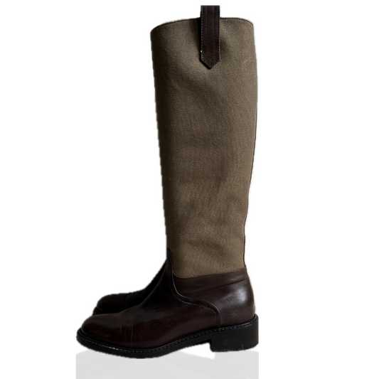 Dries Van Noten Canvas And Leather Knee-High Riding Boots