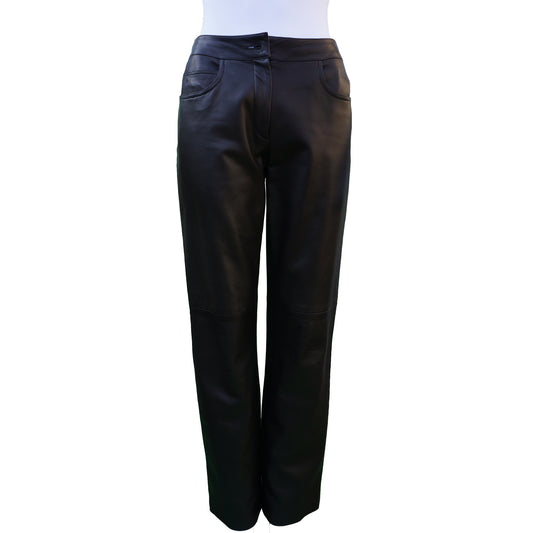 CHANEL BLACK BROWN LAMBSKIN LEATHER PANTS