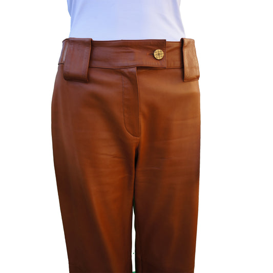 CHANEL MID-RISE CARAMEL LAMBSKIN LEATHER PANTS
