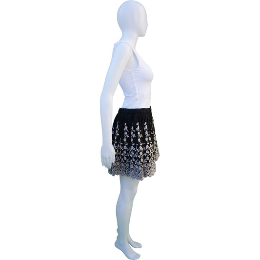 ULLA JOHNSON BLACK AND CREAM FLORAL EMBROIDERED MINI SKIRT