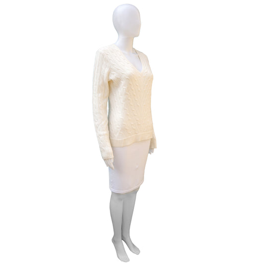 RALPH LAUREN BLACK LABEL ECRU CABLE KNIT CASHMERE TOP