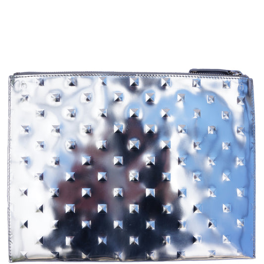 ELA STUDDED EDITOR'S POUCH SILVER MIRROR CLUTCH
