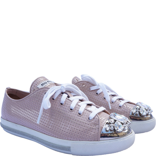 MIU MIU PINK CRYSTAL CAP-TOE SNEAKERS