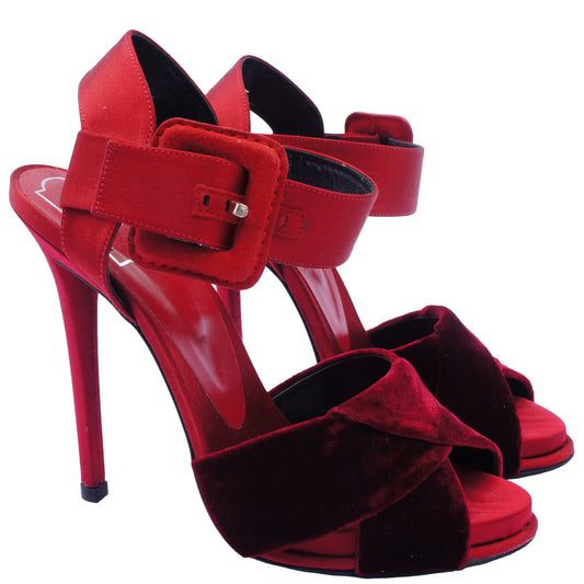ROGER VIVIER WINE SATIN & VELVET PLATFORM SANDALS