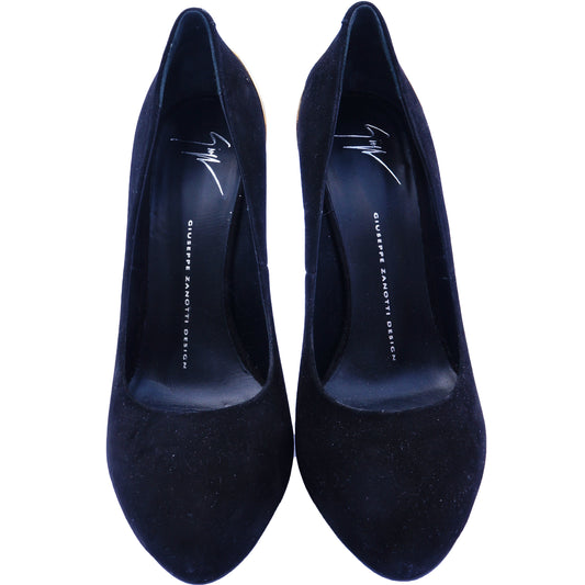 GIUSEPPE ZANOTTI SUEDE & GOLD HEEL PUMPS