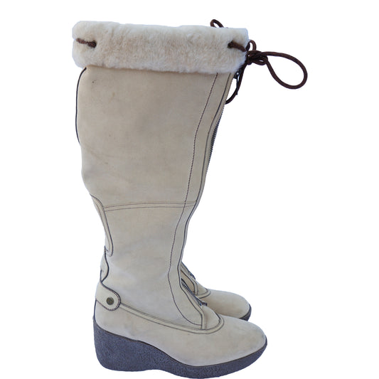COLE HAAN BEIGE SUEDE KNEE HIGH PLATFORM BOOT