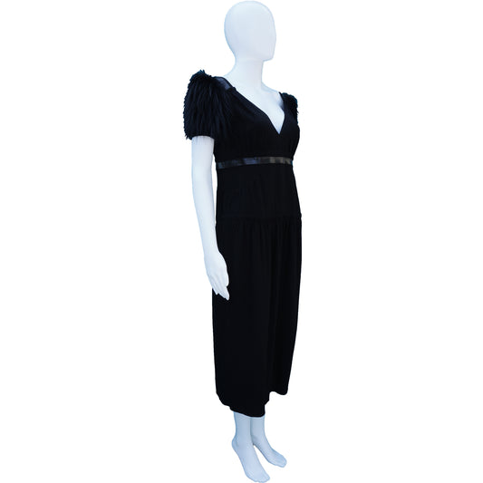 PRADA SHORT SLEEVE FOX-TRIMMED DRESS