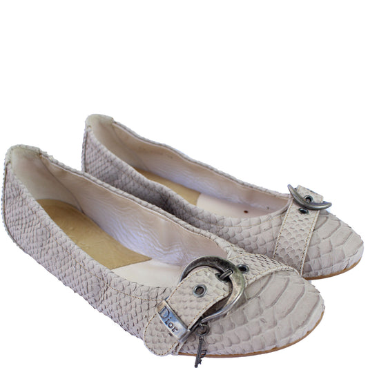 CHRISTIAN DIOR PYTHON BUCKLE FLATS