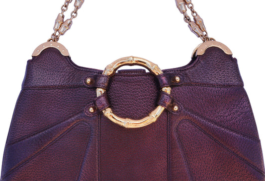 GUCCI CHAIN LINK PURPLE GOLD BAMBOO BAG