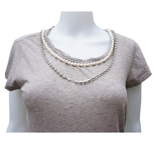 Sacai T Shirt with Pearl and Rhinestone Appliqué
