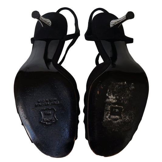 STUART WEITZMAN CONCERTO BLACK SATIN SANDALS