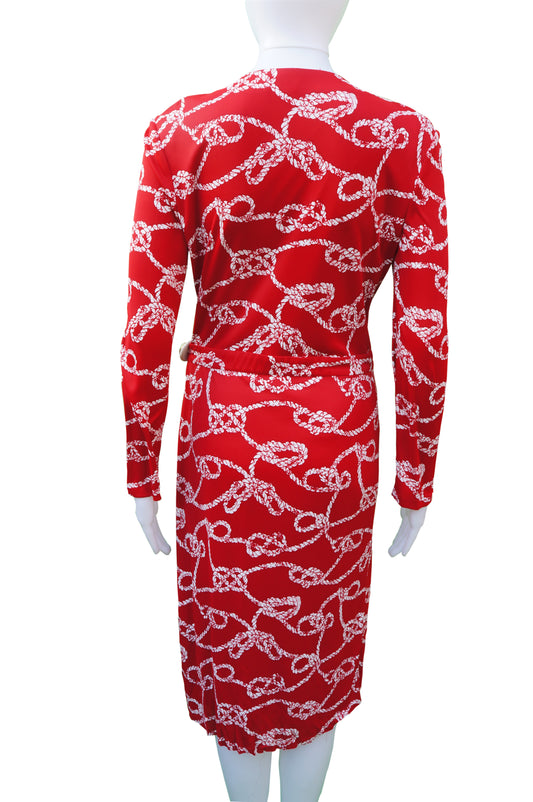 Gucci Wrap Red Rope Print Dress Long Sleeve Leather Tie