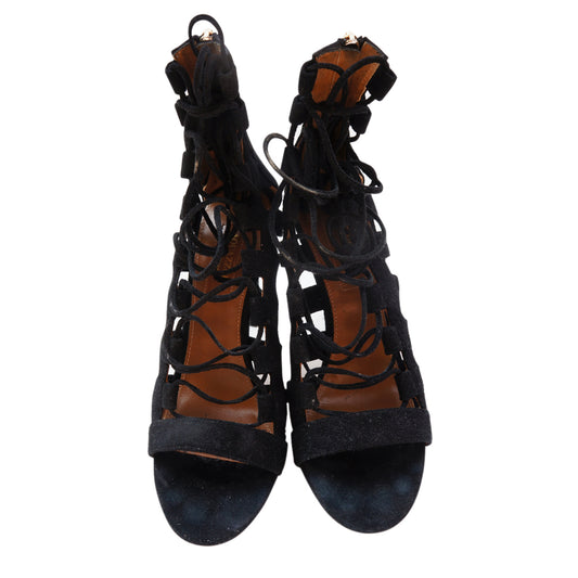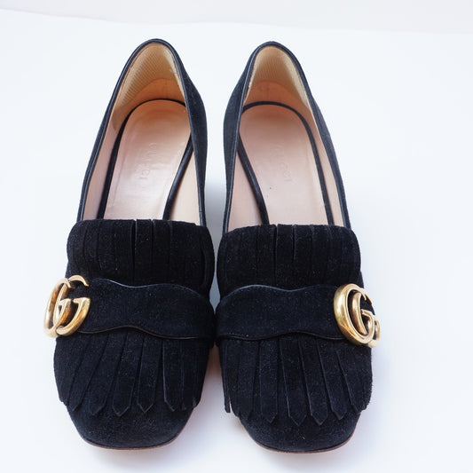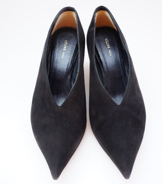 Celine Suede Pumps Black Pointed-Toes Kitten Heels