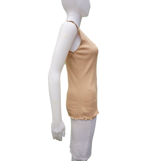 BURBERRY London Tan Sleeveless Ruffle Trim Knit Top
