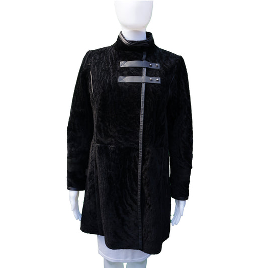 DESA BLACK SHEARLING LEATHER TRIM COAT