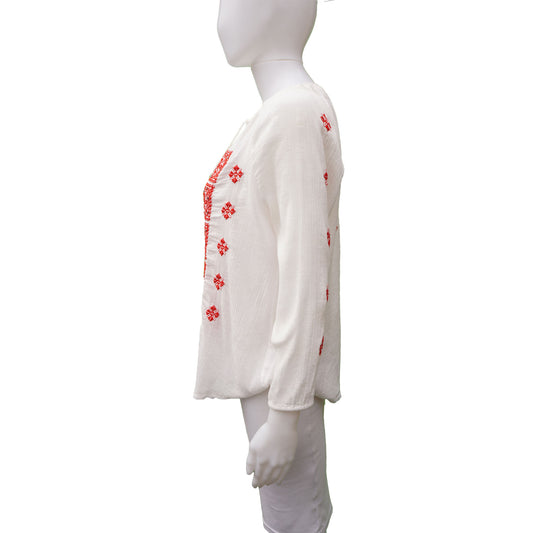 JOIE WHITE RED EMBROIDERED BEAD EMBELLISHMENT TOP