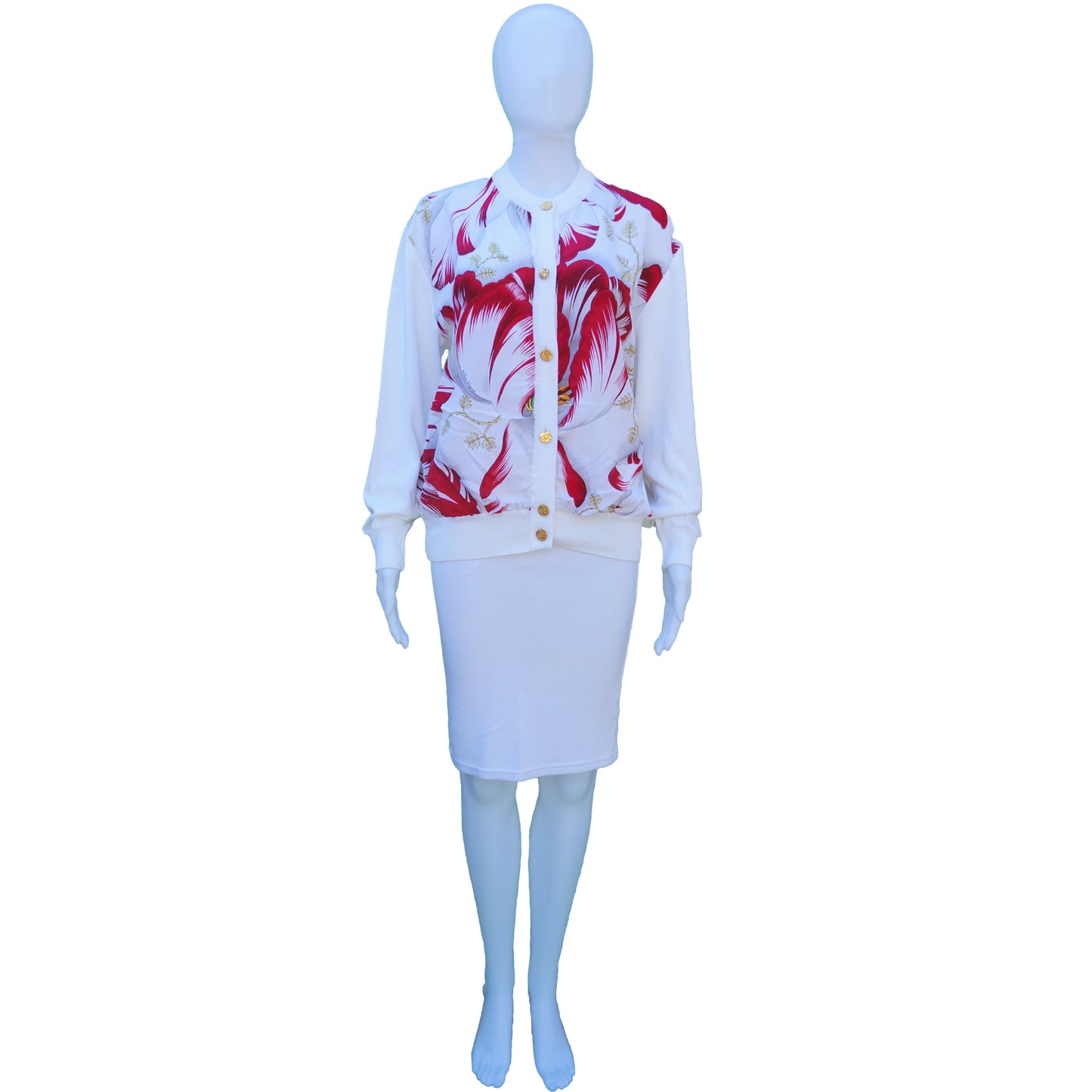 Salvatore Ferragamo vintage floral cardigan, ivory colour, gold-tone hardware, crew neck and 5 button front closure.